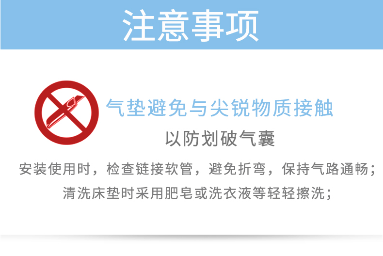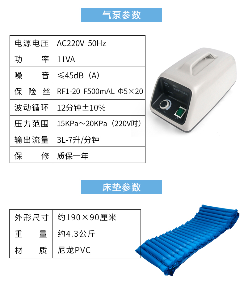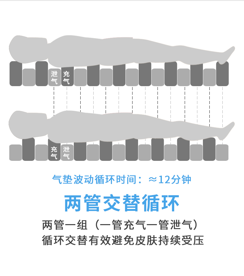 - 通過微孔噴出的干燥空氣能降低被褥中的濕度,置換污濁空氣,抑制細(xì)菌生長,結(jié)合氣床墊柔軟的支撐,共同構(gòu)成防治褥瘡的有效機(jī)理