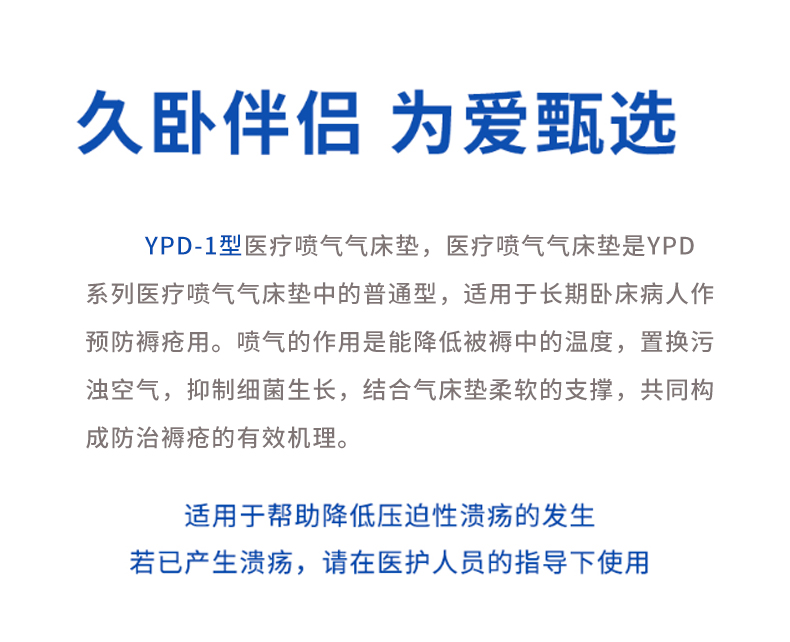 - 斯曼峰YPD-1·V型 醫(yī)療噴氣氣床墊是YPD系列醫(yī)療噴氣氣床墊中的普通型,適用于長(zhǎng)期臥床病人作預(yù)防褥瘡用。
