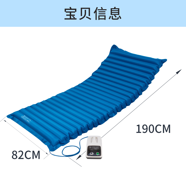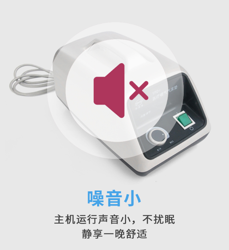 - 噴氣的作用是能降低被褥中的溫度,置換污濁空氣,抑制細(xì)菌生長(zhǎng),結(jié)合氣床墊柔軟的支撐,共同構(gòu)成防治褥瘡的有效機(jī)理。