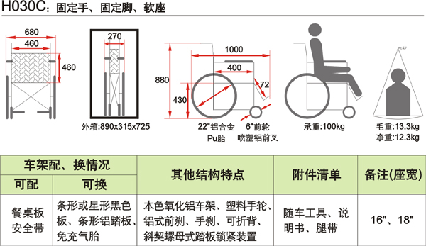 “魚躍”輪椅H030C型-產(chǎn)品技術(shù)