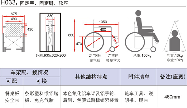 “魚(yú)躍”輪椅車 H033型-產(chǎn)品技術(shù)