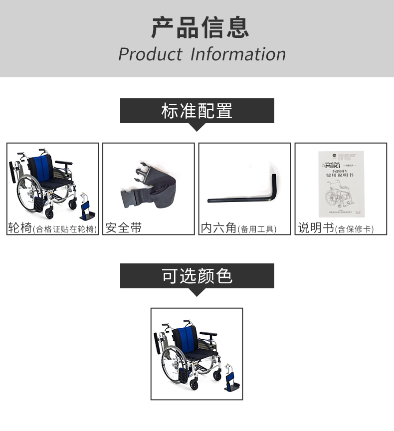 MIKI三貴 手動輪椅車MYU-4大輪  產(chǎn)品參數(shù):
