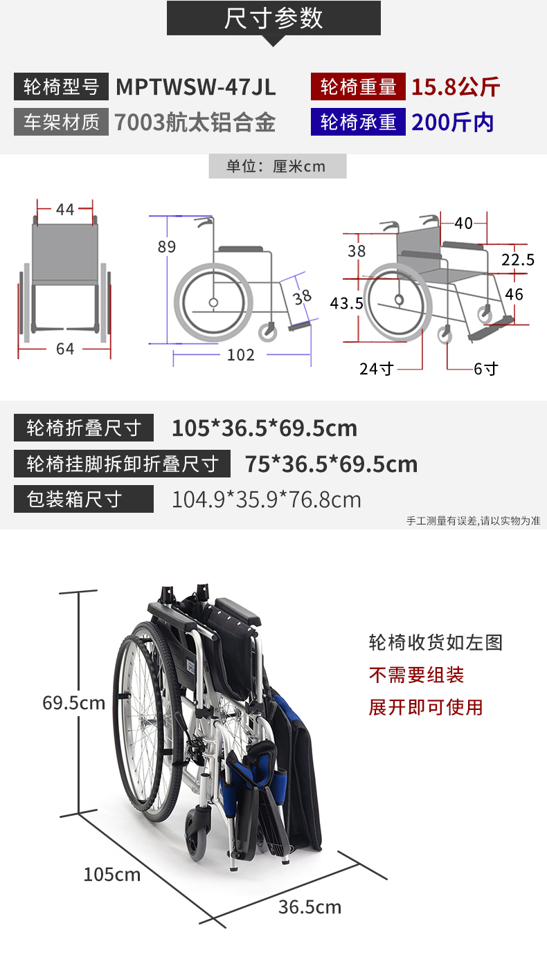 1. 輪椅型號:MPTWSW-47JL