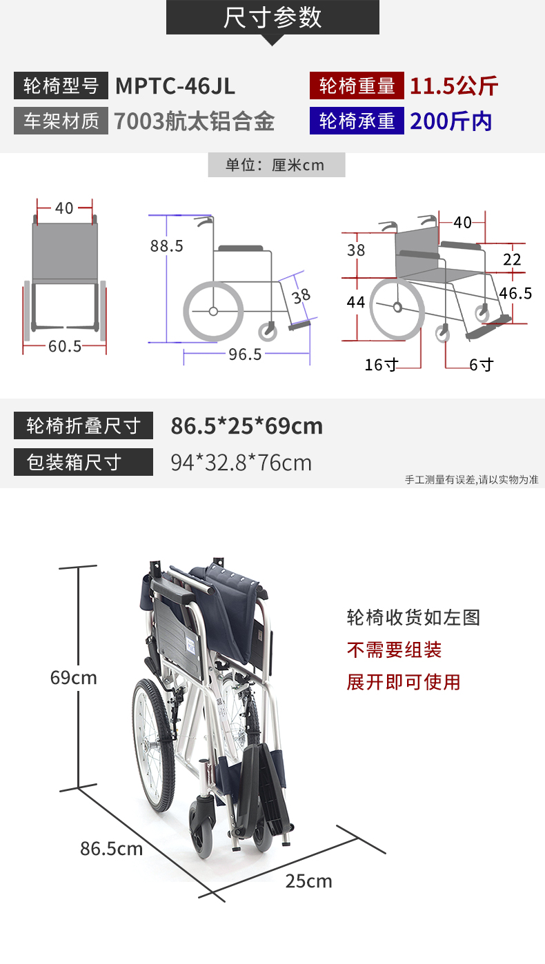 MIKI三貴 手動輪椅車MPTC-46JL  產(chǎn)品參數(shù):