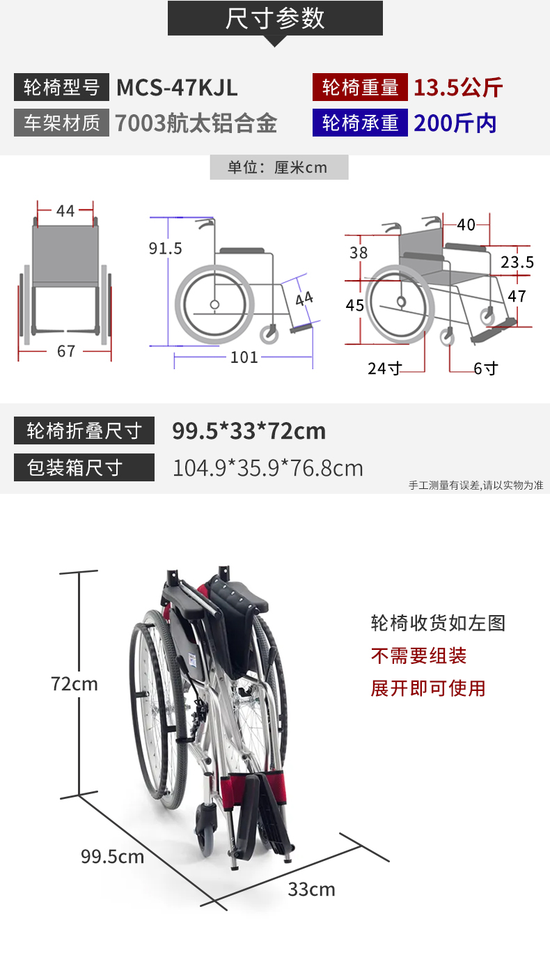 MIKI三貴 手動輪椅車MCS-47KJL  產(chǎn)品參數(shù):