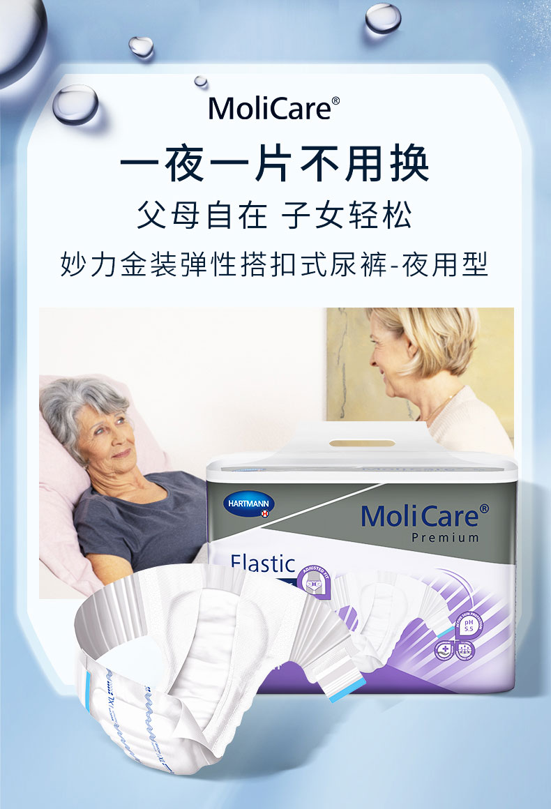 保赫曼妙力金裝彈性搭扣式尿褲(夜用型)中號(hào)MoliCare Pr. Elastic 8D M P26 30片/包 3包/箱
