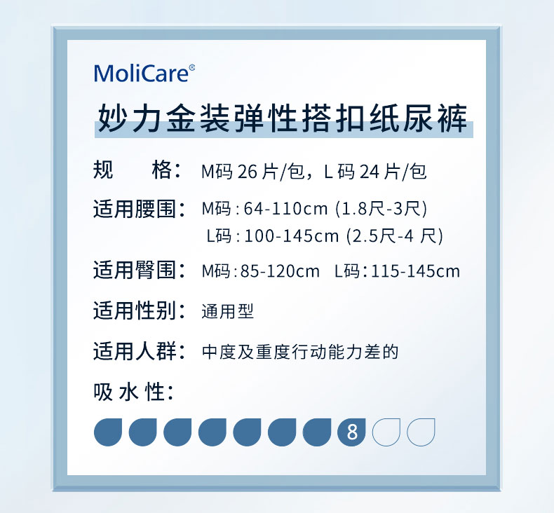 - 品名:保赫曼妙力金裝彈性搭扣式尿褲(夜用型) 大號MoliCare Pr. Elastic 8D L P24