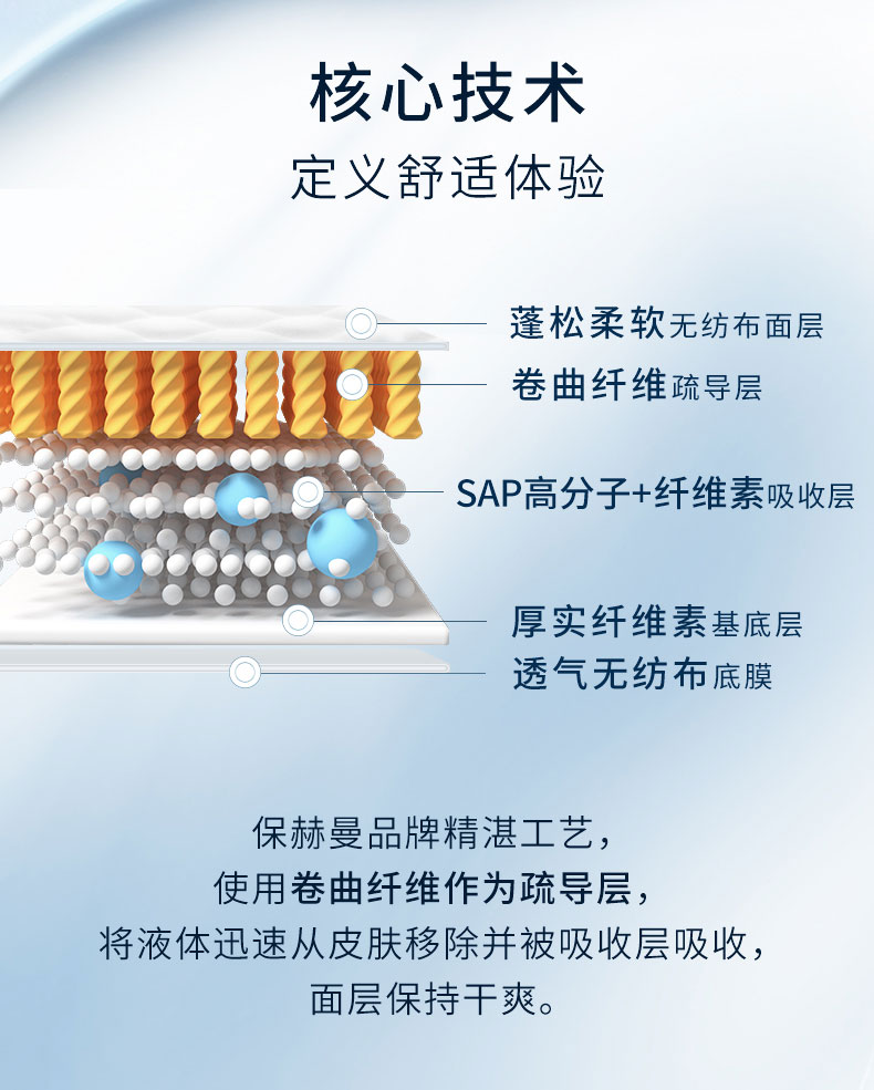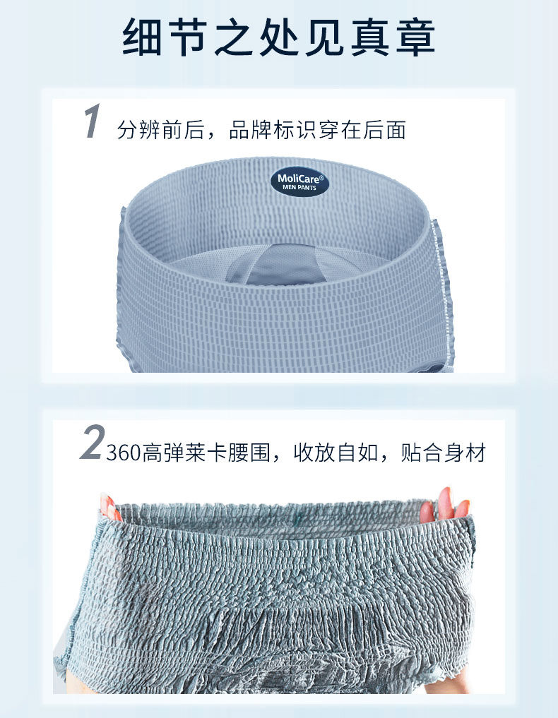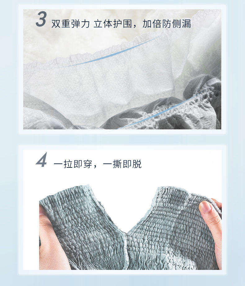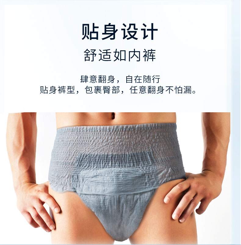 - pH5.5弱酸性保護(hù)皮膚預(yù)防失禁皮炎、三層吸收鎖定、親膚、低敏、透氣性好、速干、低調(diào)、防漏、除臭、貼合男性解剖