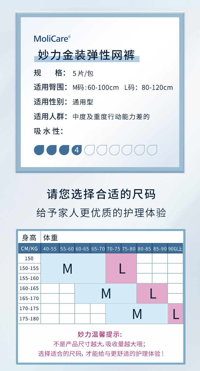 保赫曼妙力金裝彈性網(wǎng)褲大號Molicare Pr Fixpants Short Leg L P5 5片/包 60包/箱