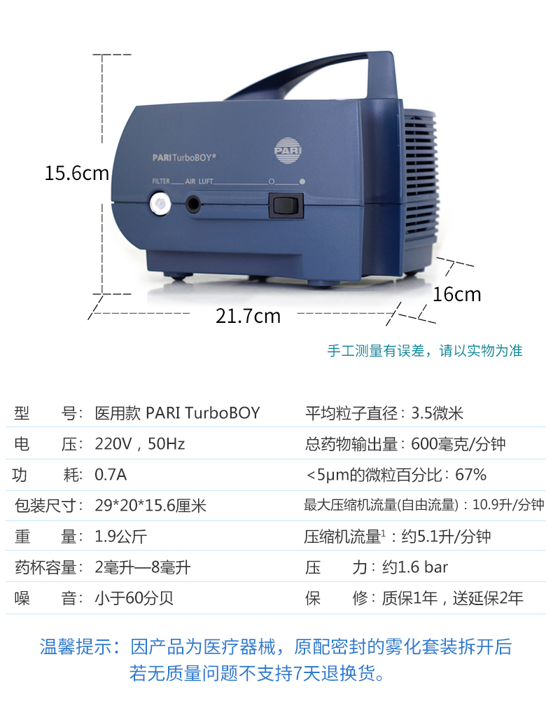 PARI 德國帕瑞 家用霧化器 TurboBOY 產(chǎn)品參數(shù):