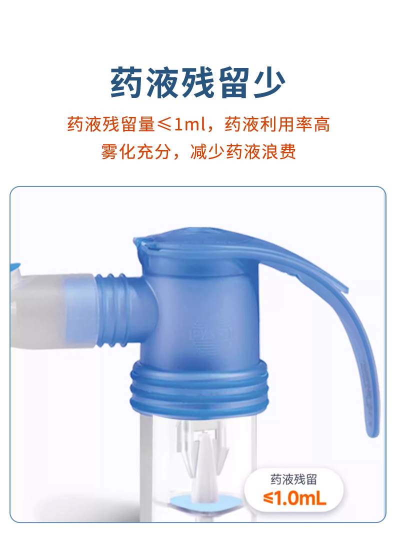 - 藥液殘留量≤1ml,藥液利用率高,霧化充分,減少藥液浪費。