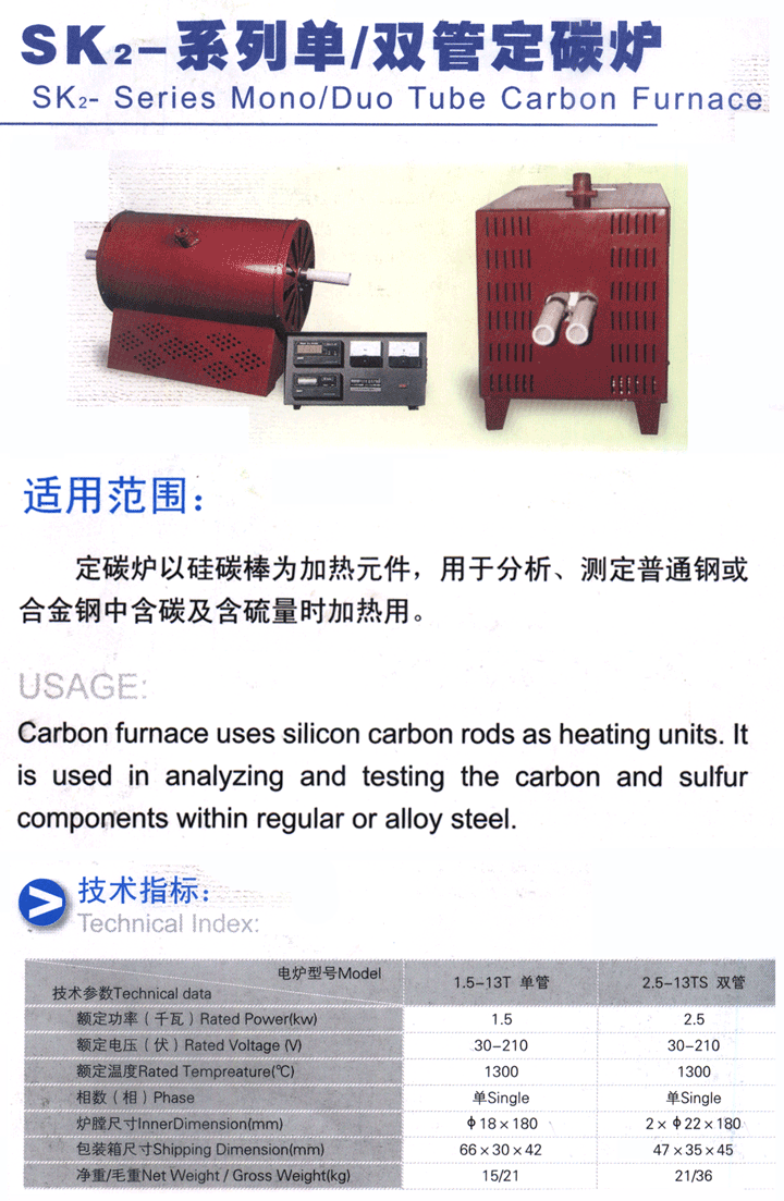 - 品名:上海申光單管定碳爐 SK2-1.5-13T