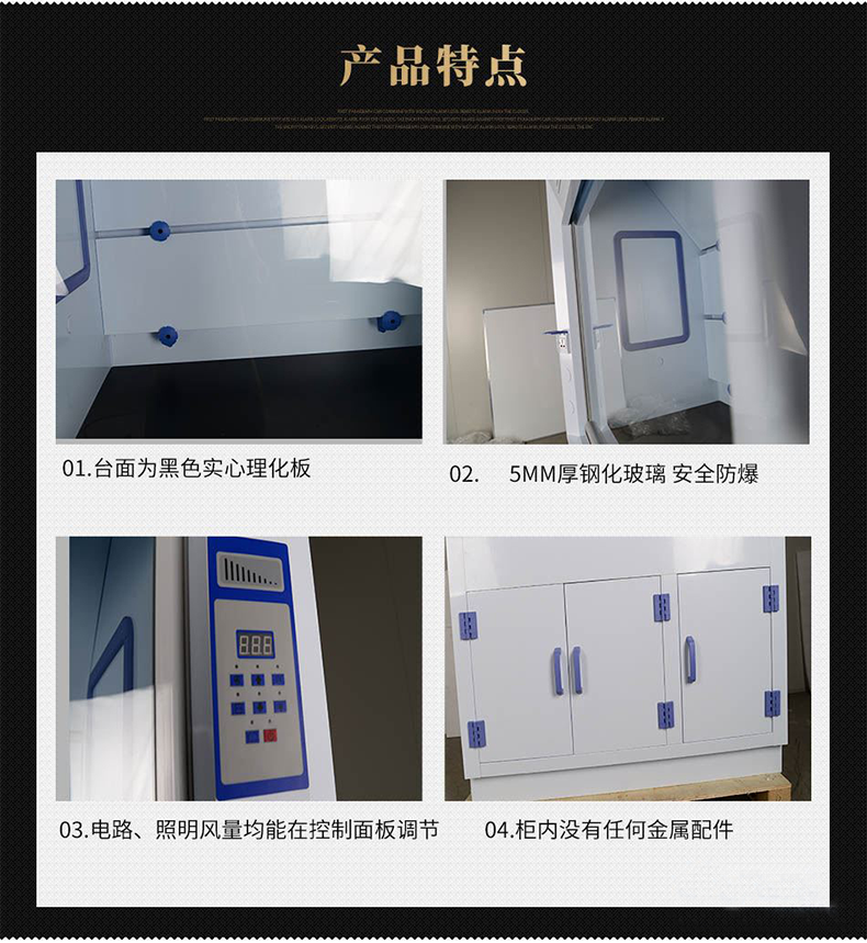 4、內(nèi)襯采用8mm厚PP板制做,一體焊接工藝,內(nèi)襯間有優(yōu)良的氣密性;導(dǎo)流板具有三級排風(fēng)設(shè)計(jì),保證在不同實(shí)驗(yàn)時(shí)產(chǎn)生的有害氣體比重不同時(shí),確保有害氣體完全排放;