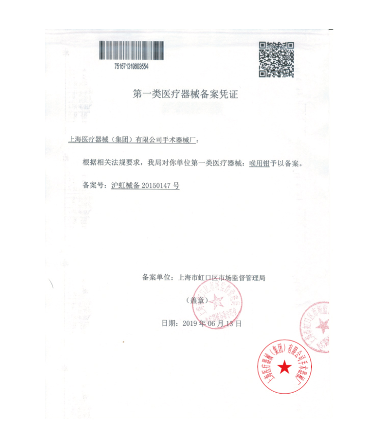 - 產(chǎn)品注冊證號:滬虹械備 20150147 號