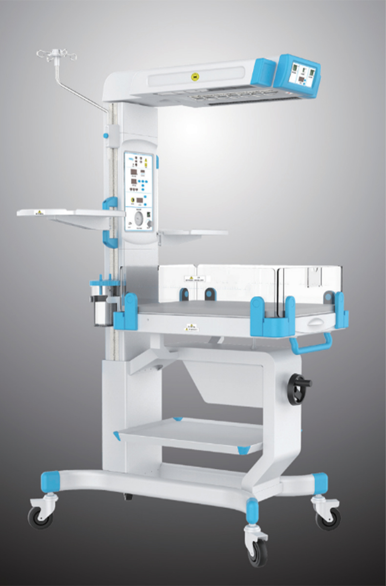 由輻射頭、控制器、嬰兒床架、機(jī)腳、皮膚溫度傳感器、托盤、輸液架、光療燈(選配)組成。