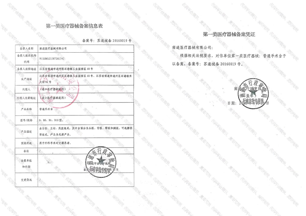- 產(chǎn)品注冊證號:蘇通械備20160019