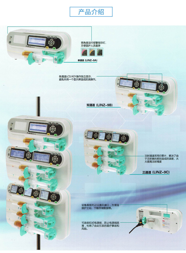 其他功能:電源指示,注射總量設(shè)置查詢,注射流速和已注量實(shí)時(shí)顯示。