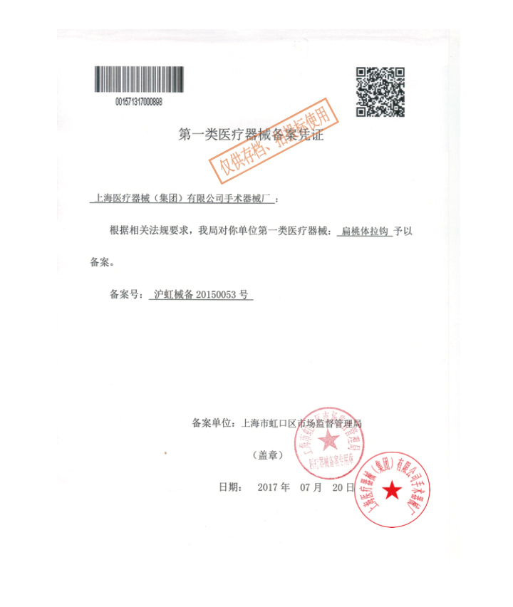 - 產(chǎn)品注冊證號:滬虹械備20150053號