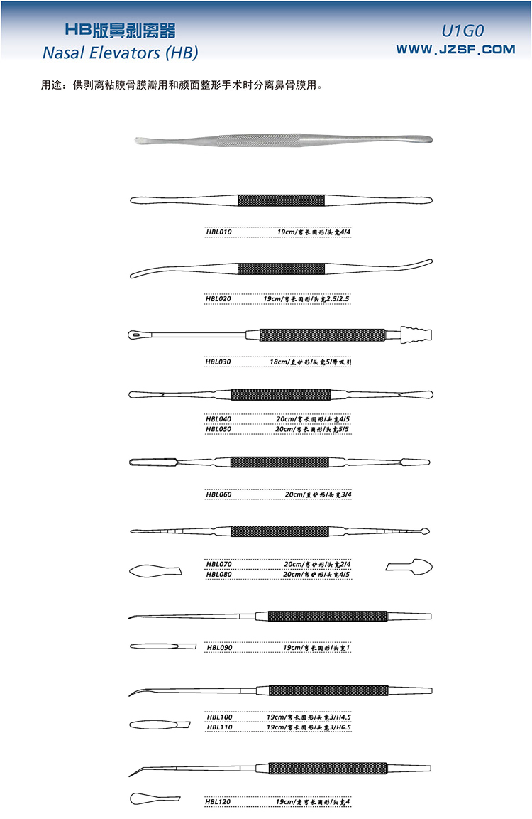 金鐘 鼻剝離器 HBL060 20cm 直鏟形 頭寬 3/4