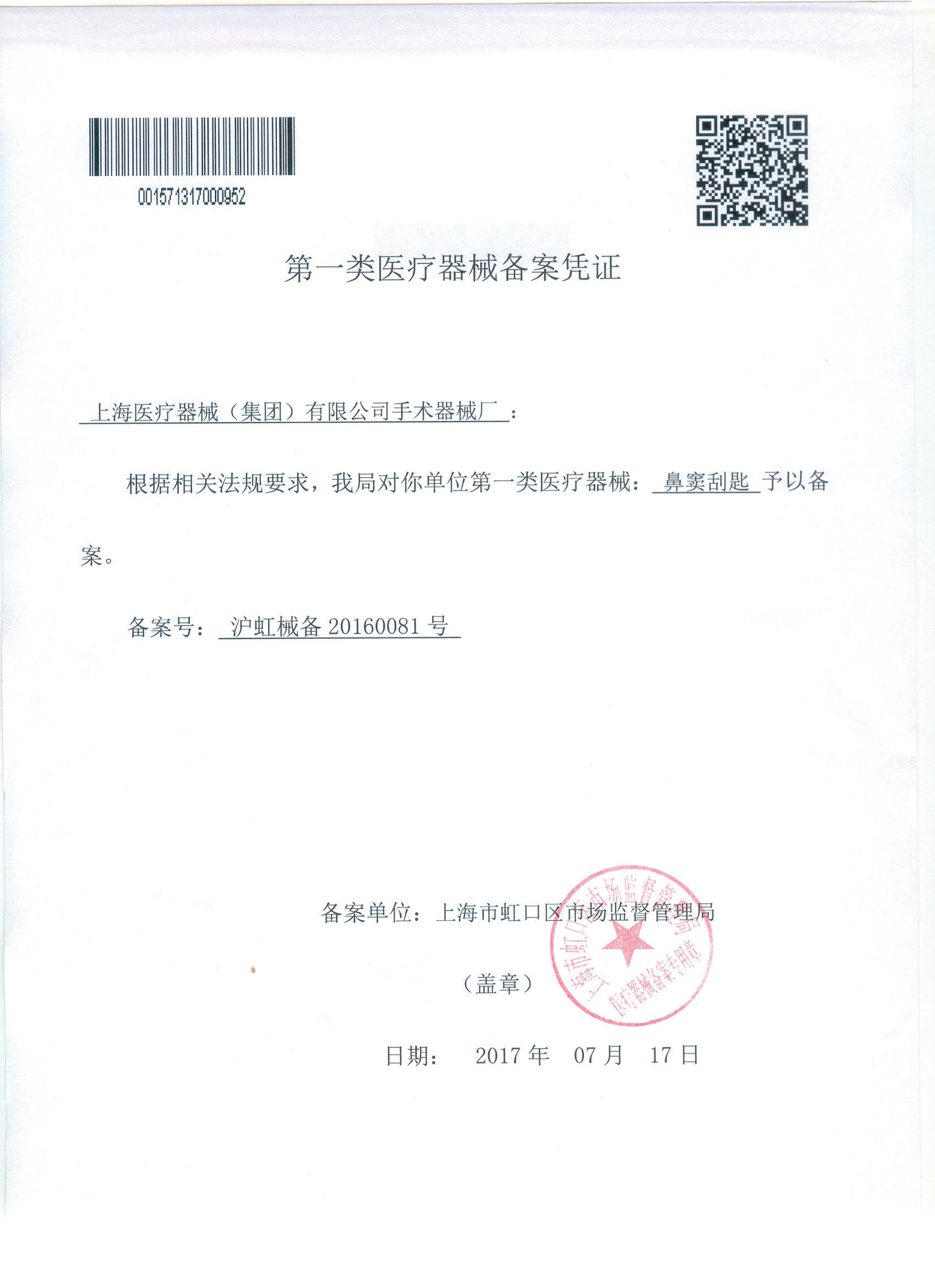 - 產(chǎn)品注冊(cè)證號(hào):滬虹械備 20160081 號(hào)