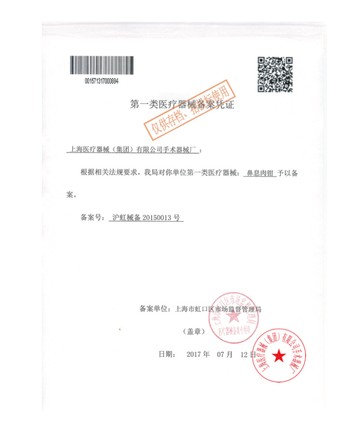 - 產(chǎn)品注冊證號:滬虹械備20150013號