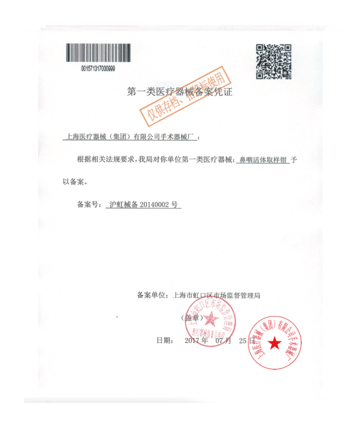 - 產(chǎn)品注冊(cè)證號(hào):滬虹械備 20140002 號(hào)