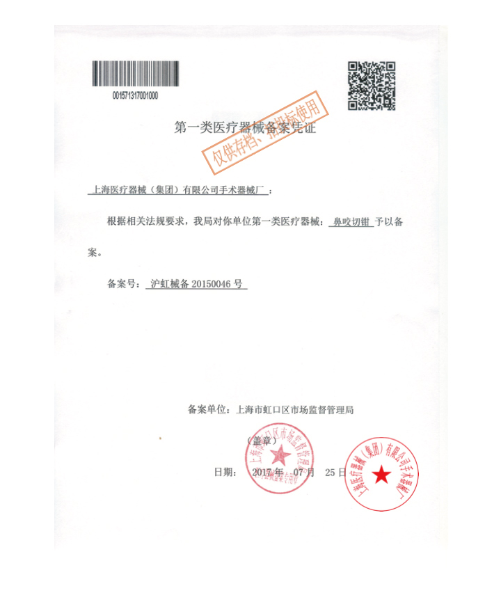 - 產(chǎn)品注冊(cè)證號(hào):滬虹械備 20150046 號(hào)