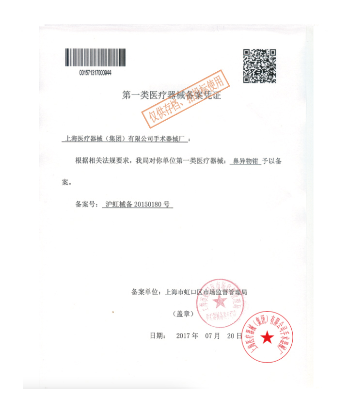 - 產(chǎn)品注冊證號:滬虹械備 20150180 號