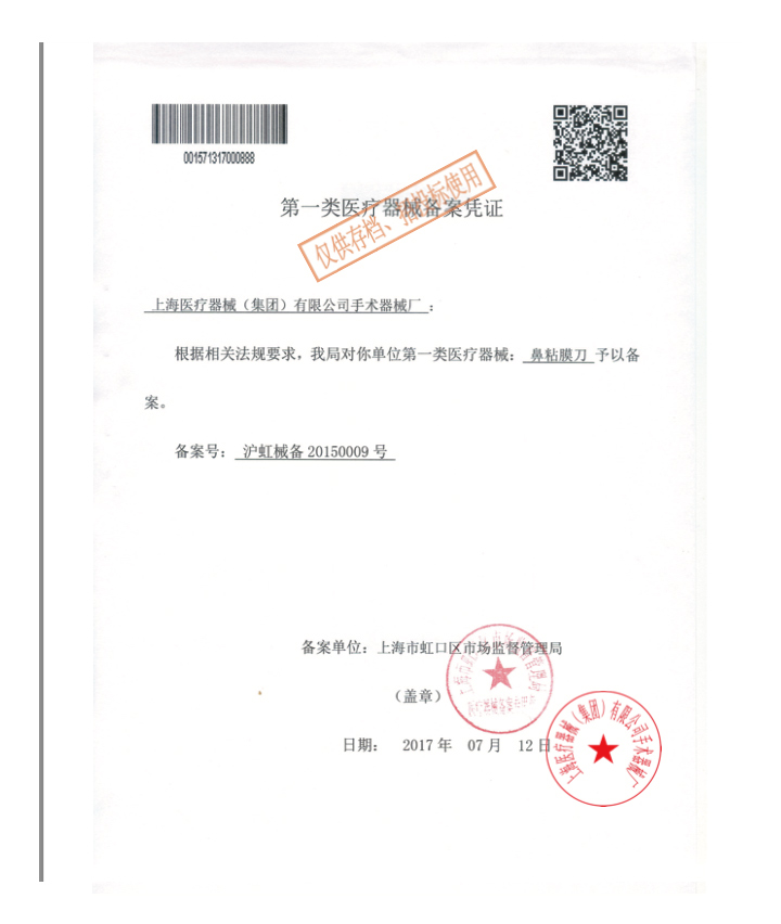 - 產(chǎn)品注冊(cè)證號(hào):滬虹械備 20150009 號(hào)