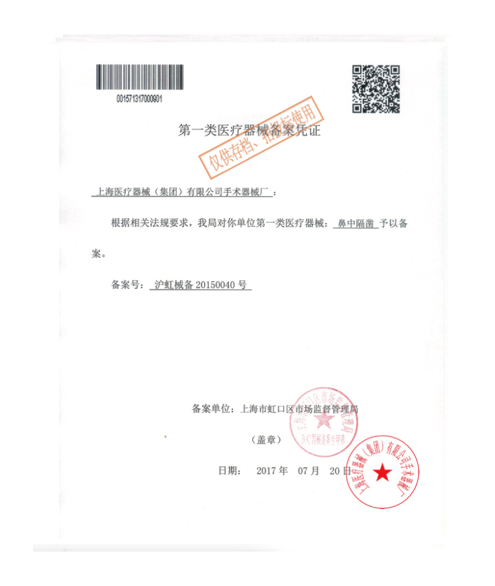 - 產(chǎn)品注冊證號:滬虹械備 20150040 號