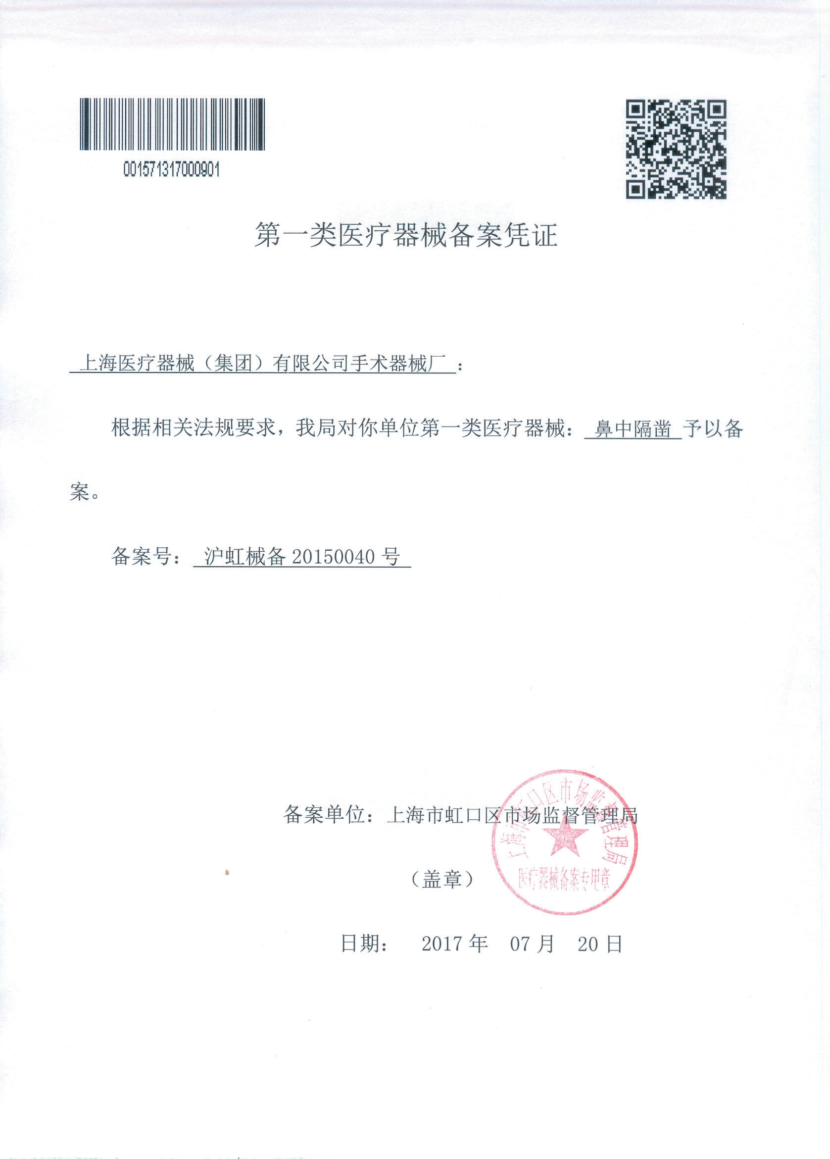 - 產(chǎn)品注冊(cè)證號(hào):滬虹械備 20150040 號(hào)