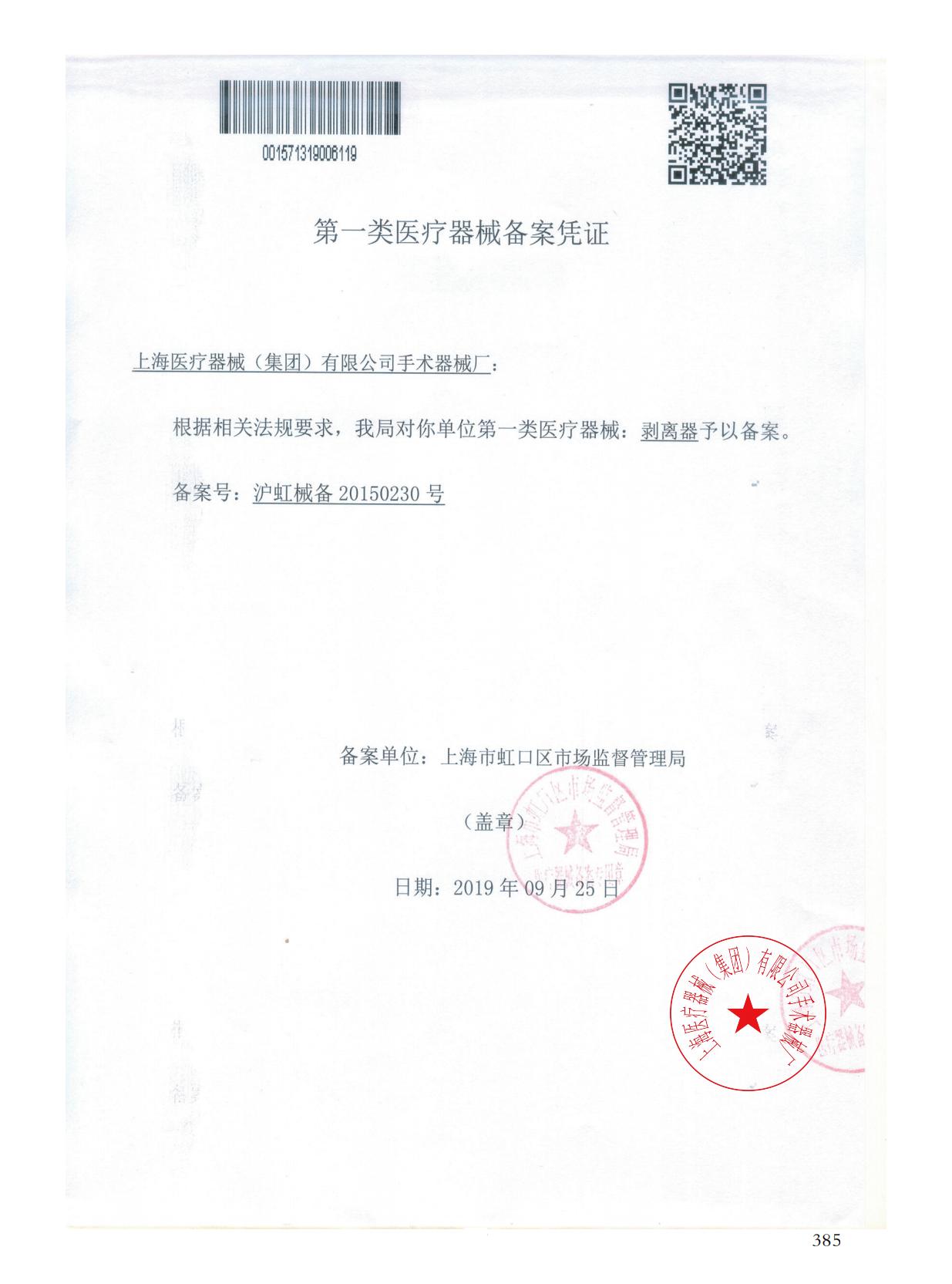 - 產(chǎn)品注冊證號: 滬虹械備20150230號
