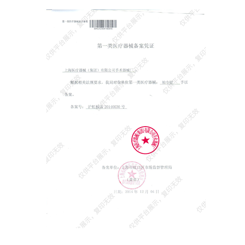 - 產(chǎn)品注冊證號:滬虹械備20140030號