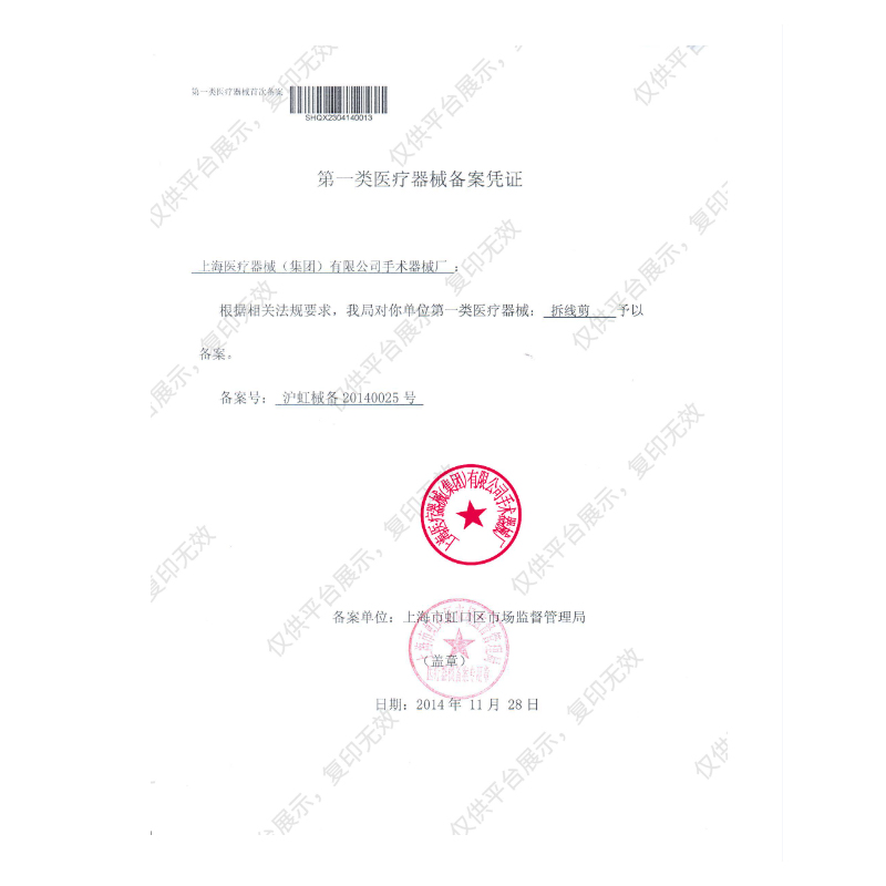 - 產(chǎn)品注冊(cè)證號(hào):滬虹械備20140025號(hào)