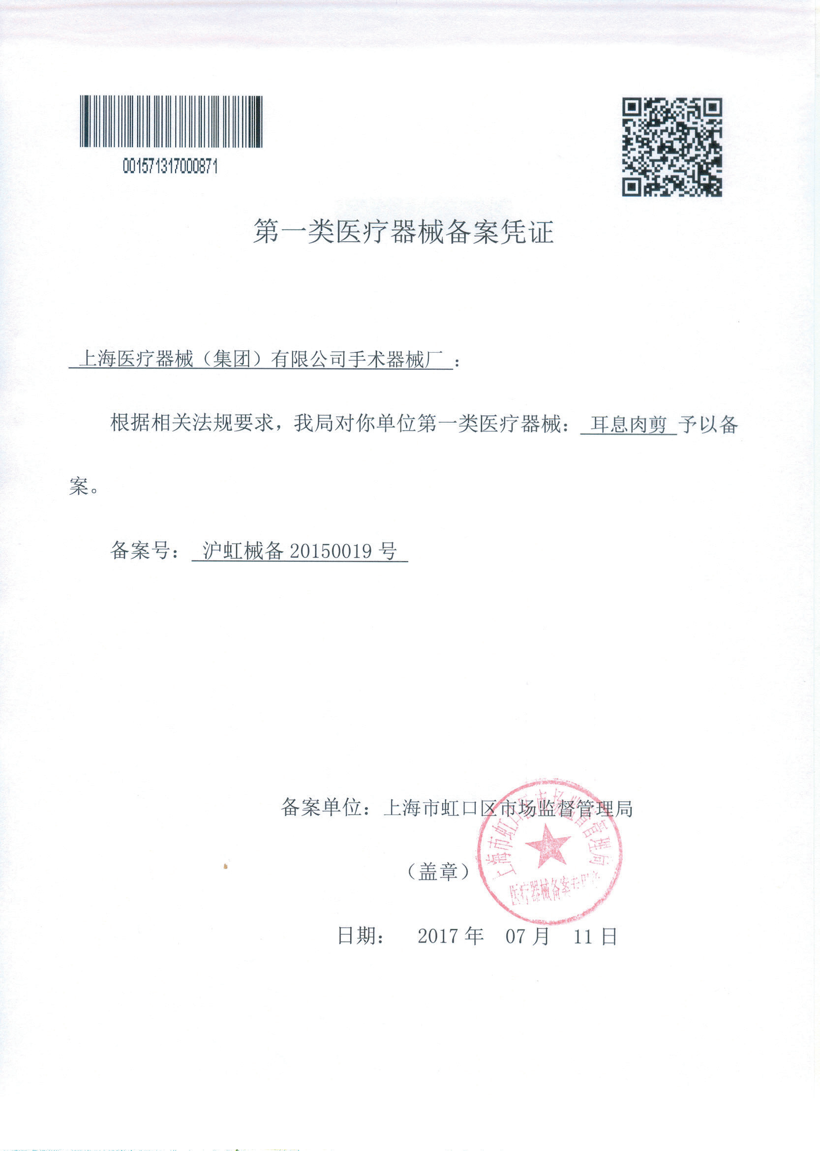 - 產(chǎn)品注冊(cè)證號(hào):滬虹械備 20150019號(hào)