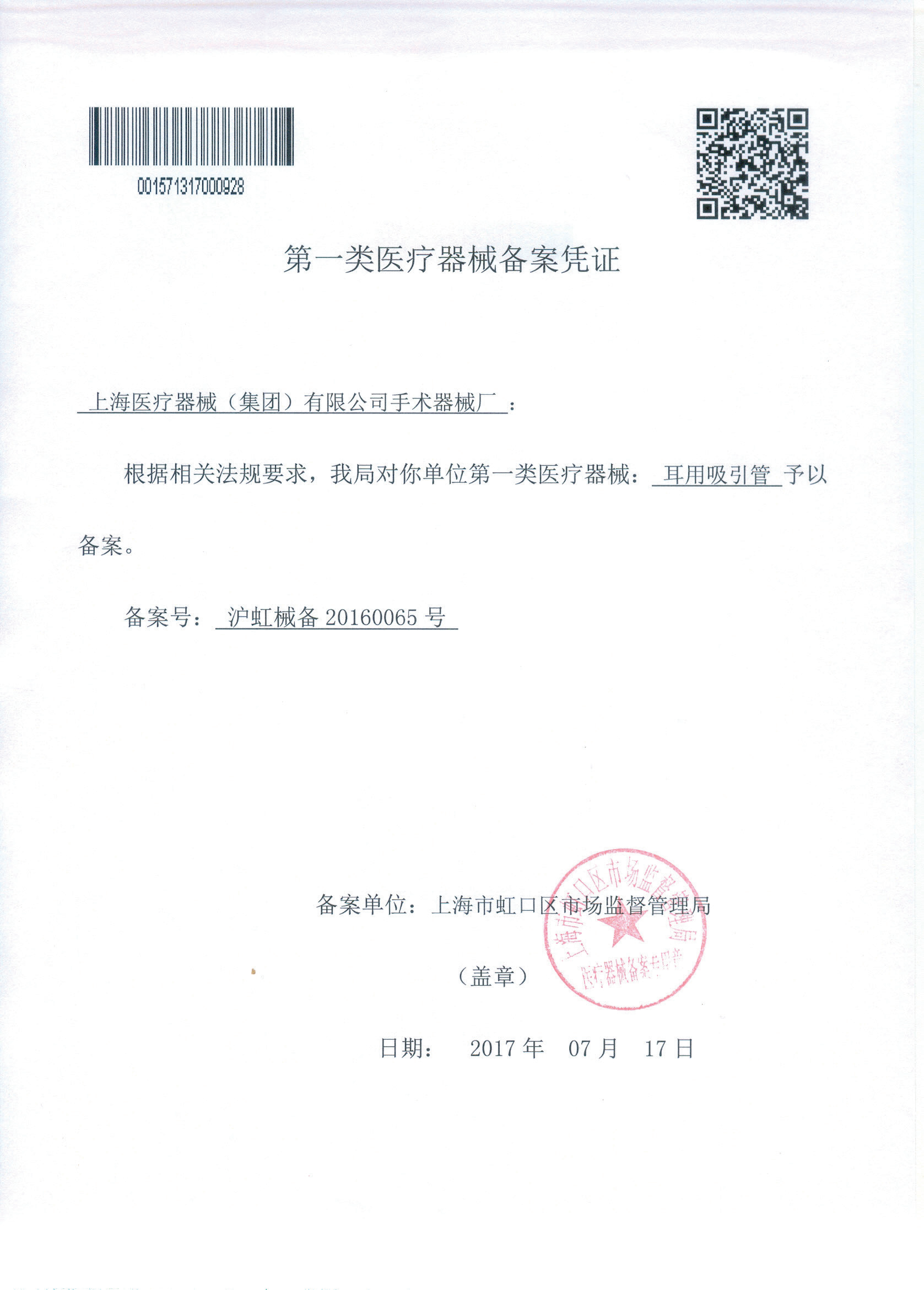 - 產(chǎn)品注冊(cè)證號(hào):滬虹械備 20160065號(hào)