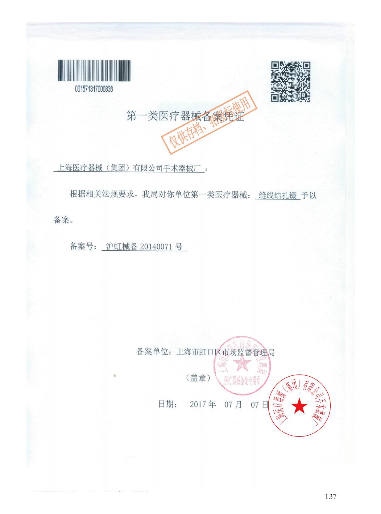 - 產(chǎn)品注冊證號:滬虹械備20140071號