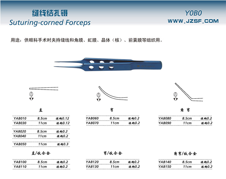 金鐘 縫線結(jié)扎鑷 YAB120 8.5cm 彎 鉤深0.2(鈦)