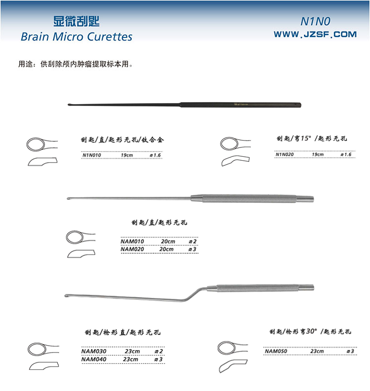 金鐘刮匙N1N020 19cm 彎 15° 匙形無孔 刃1.6(鈦)