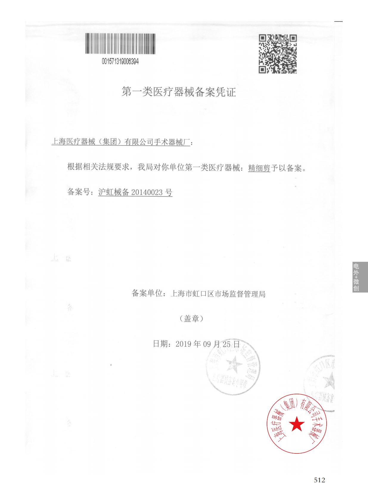 - 產(chǎn)品注冊證號:滬虹械備 20140023 號