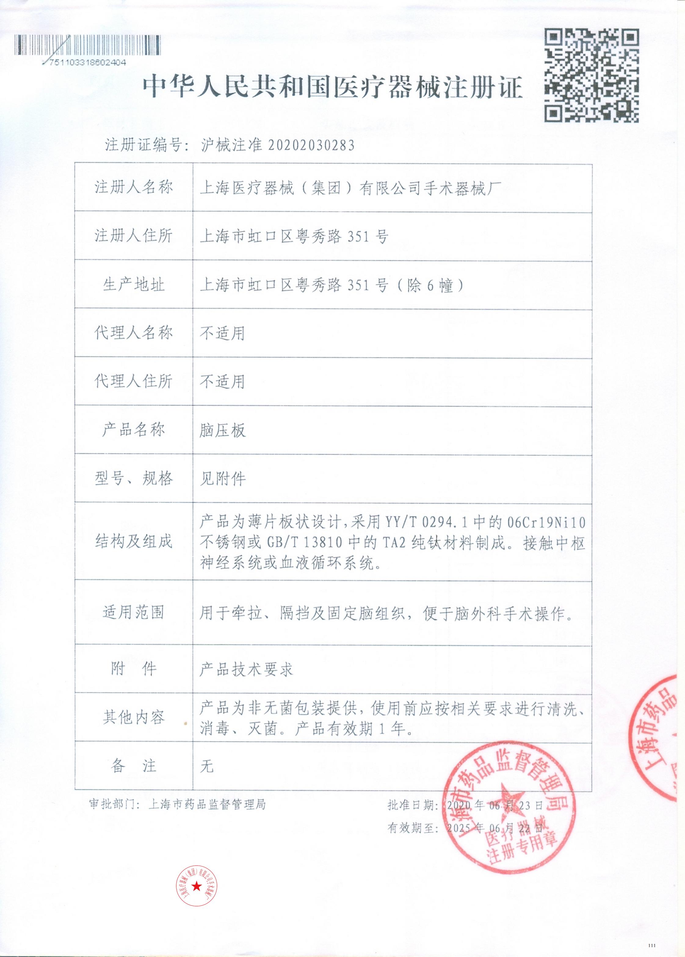 - 產(chǎn)品注冊證號:滬械注準(zhǔn) 20202030283