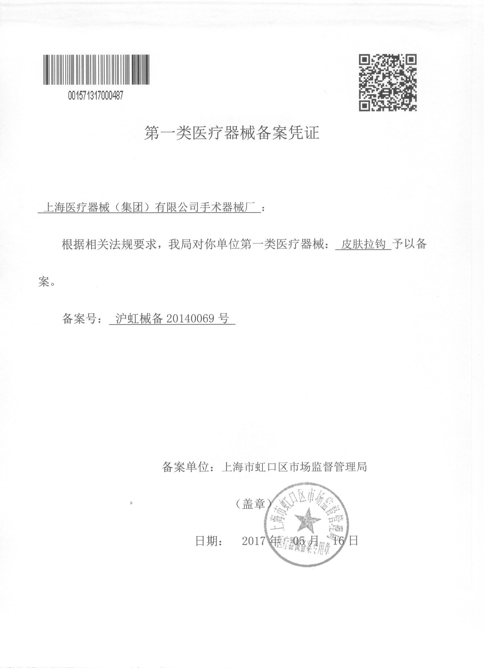 - 產(chǎn)品注冊證號:滬虹械備 20140069 號
