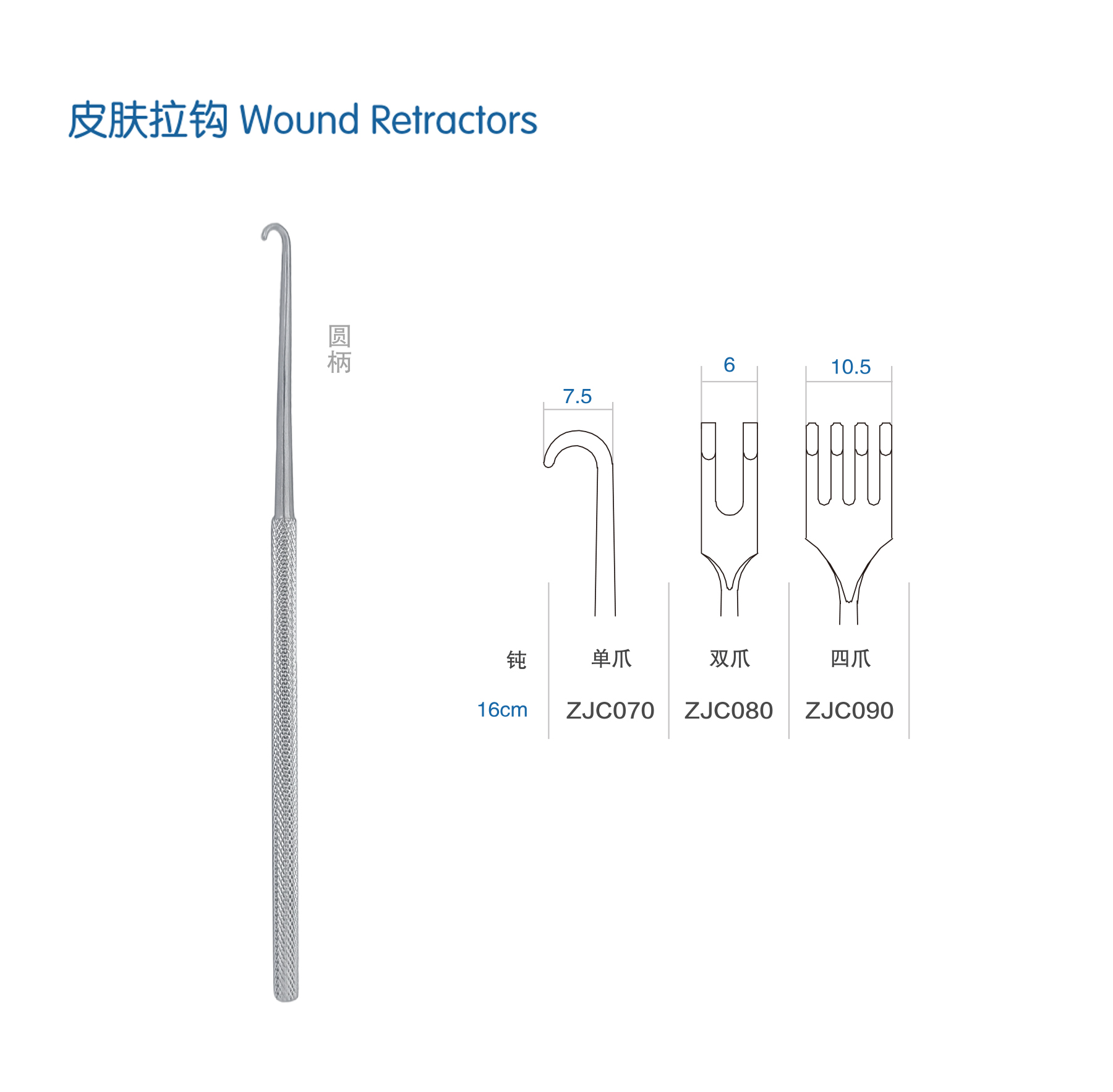 金鐘皮膚拉鉤ZJC080 16cm 雙爪 鈍 圓柄