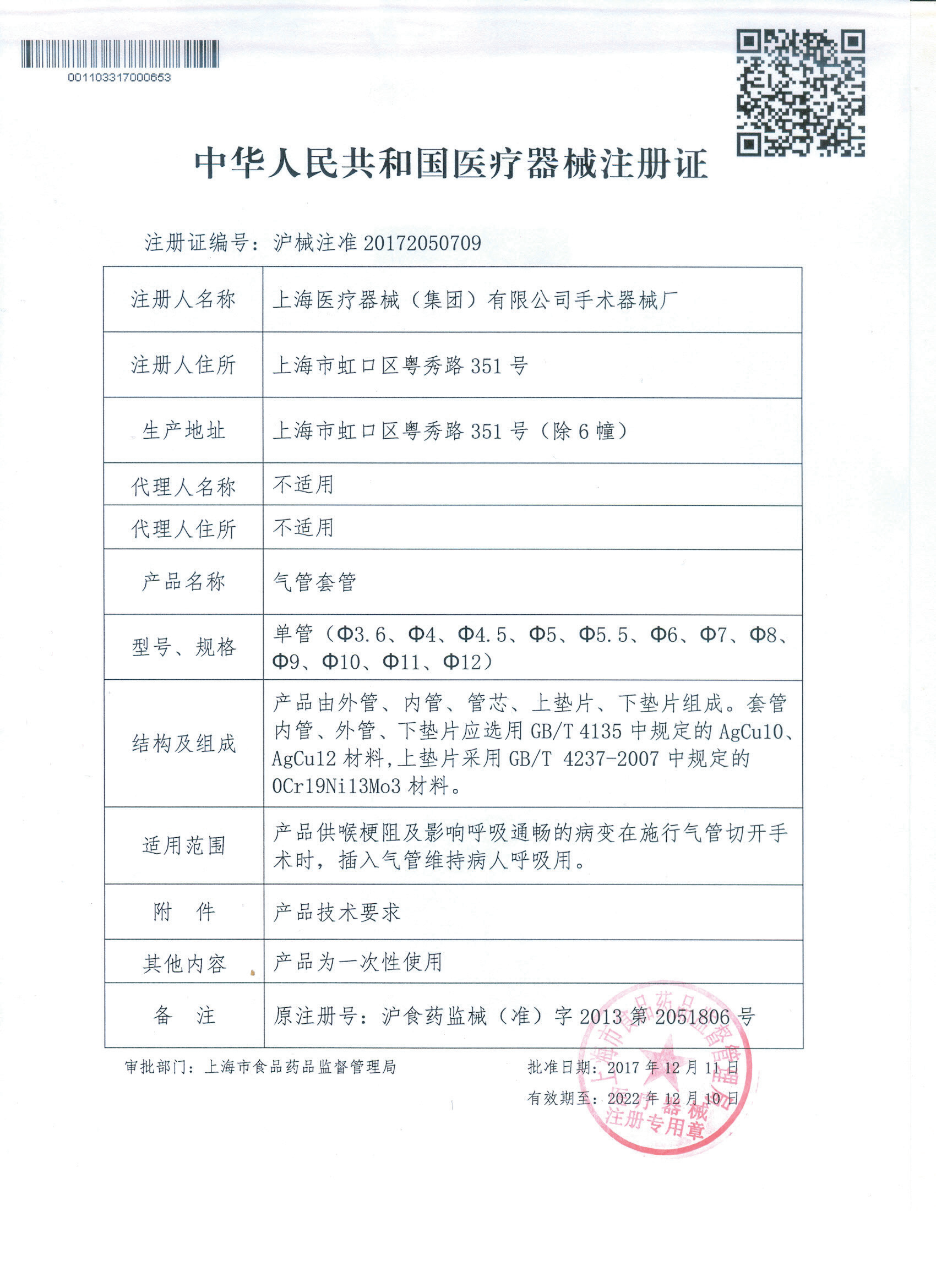 - 產(chǎn)品注冊(cè)證號(hào):滬械注準(zhǔn) 20172050709
