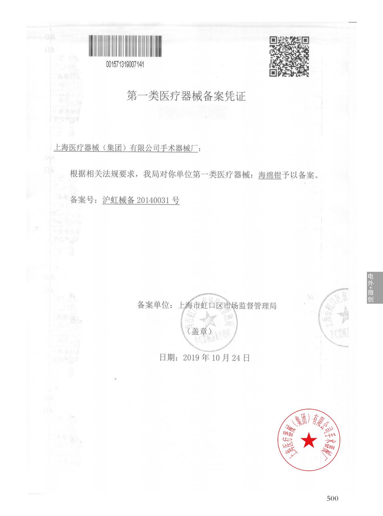 - 產(chǎn)品注冊證號:滬虹械備20140031號