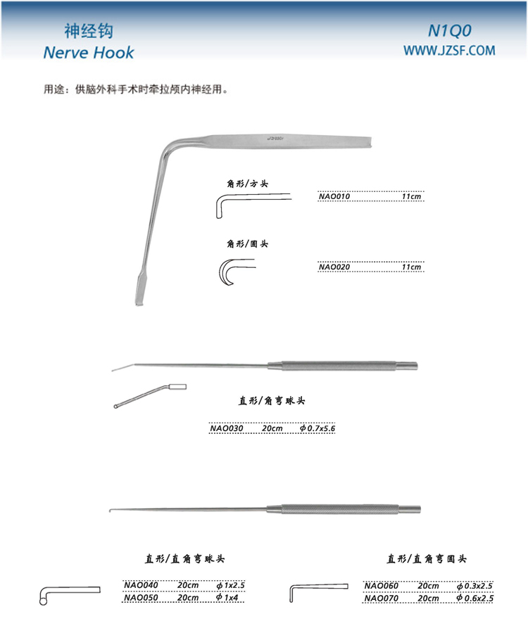 金鐘神經(jīng)根拉鉤NAO040 20cm 直形 直角彎球頭 φ1×2.5