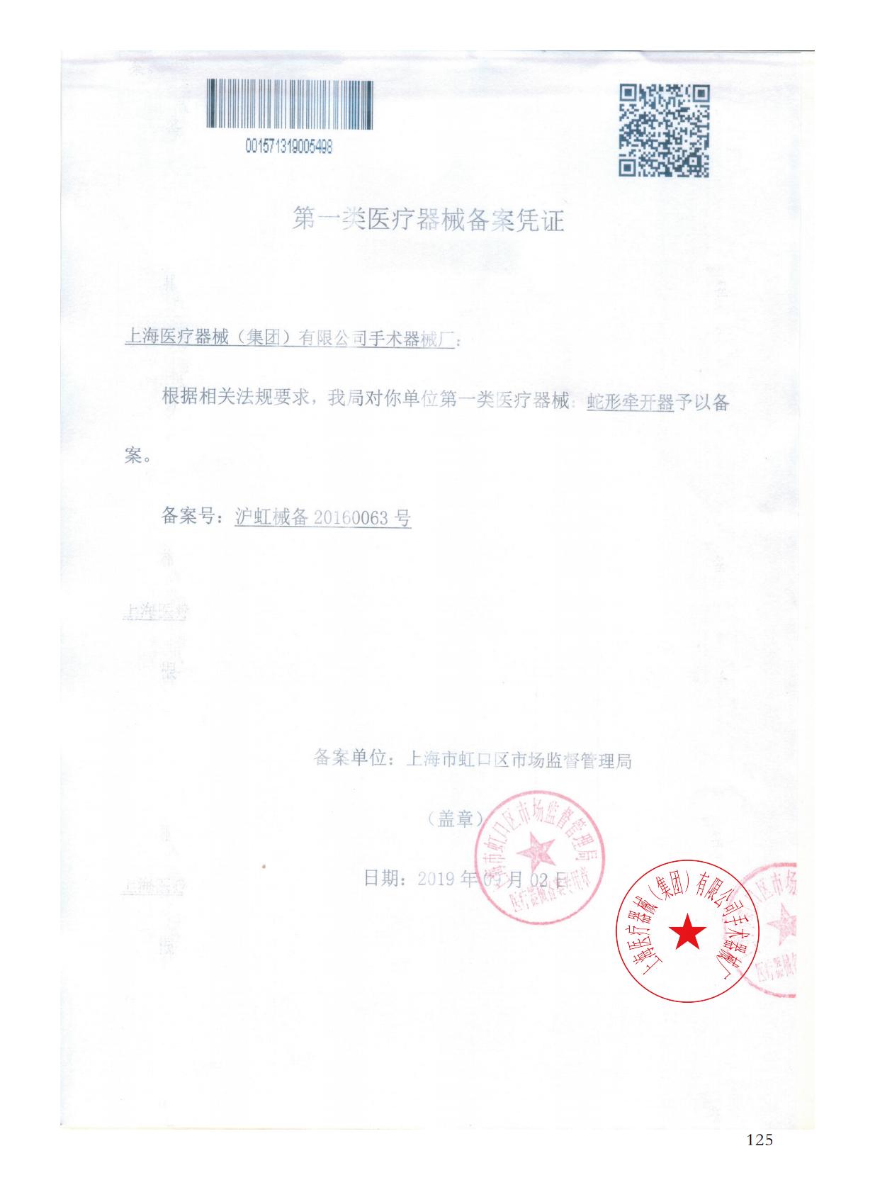 - 產(chǎn)品注冊證號:滬虹械備 20160063 號