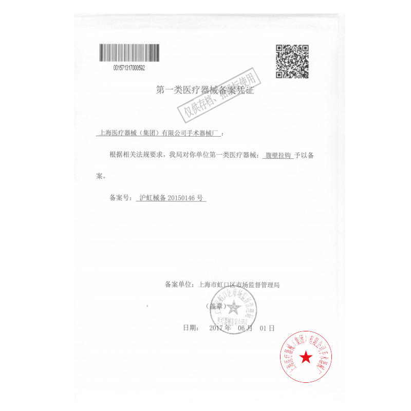 - 產(chǎn)品注冊(cè)證號(hào):滬虹械備20150146號(hào)