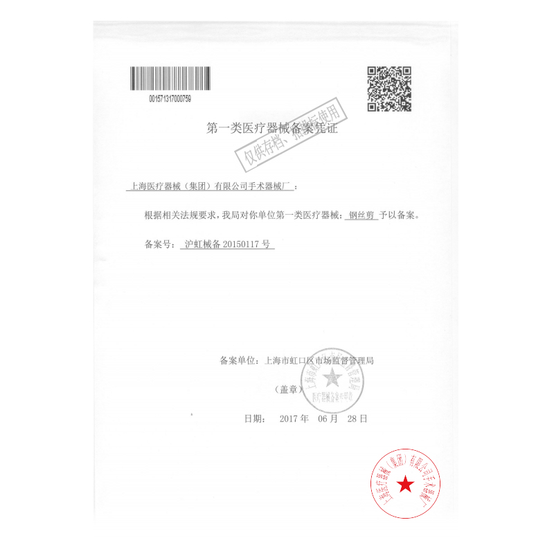 - 產(chǎn)品注冊(cè)證號(hào):滬虹械備 20150117 號(hào)