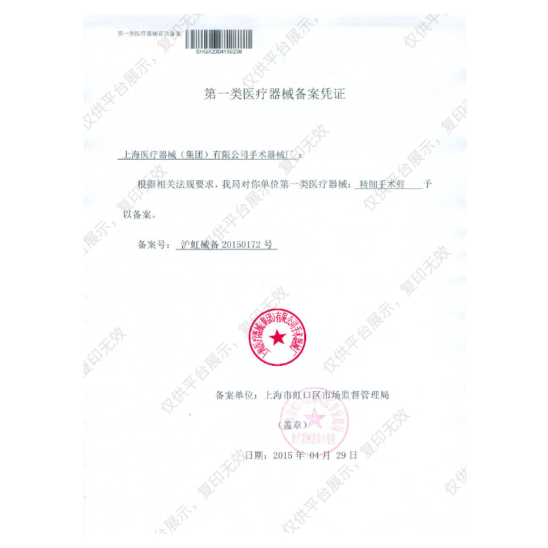 - 產(chǎn)品注冊證號:滬虹械備20150172號